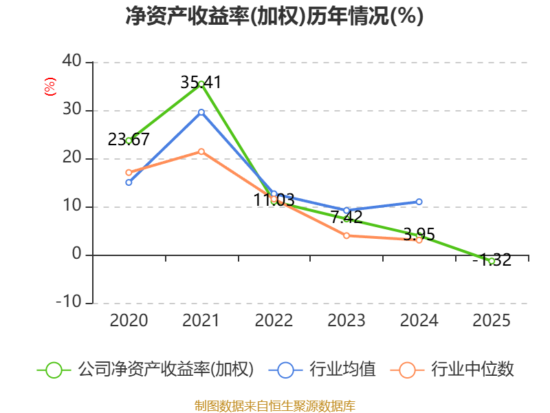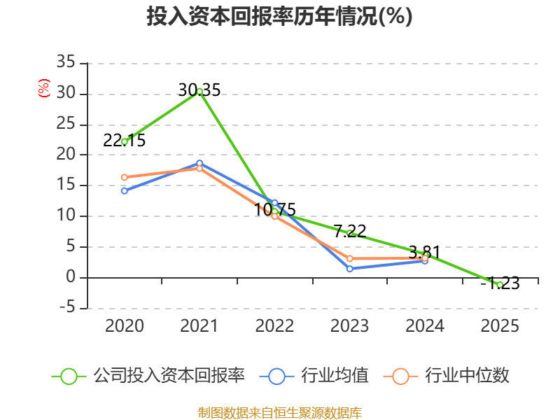 数据显示,2025年公司加权平均净资产收益率为-1.32%,较上年同期下降5.27个百分点。公司2025年投入资本回报率为-1.23%,较上年同期下降5.04个百分点。