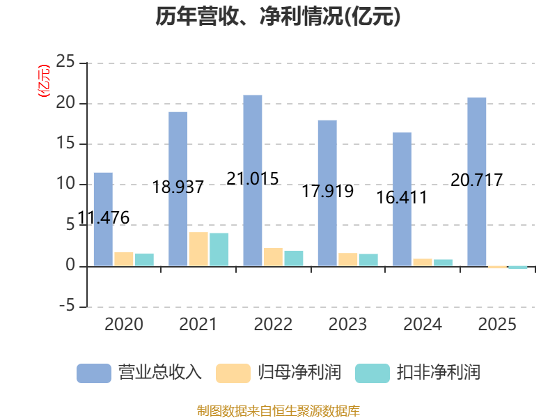 中证智能财讯华尔泰(001217)4月24日披露2025年年度报告。2025年,公司实现营业总收入20.72亿元,同比增长26.24%;归母净利润亏损2944.07万元,上年同期盈利8774.27万元;扣非净利润亏损3796.34万元,上年同期盈利7877.94万元;经营活动产生的现金流量净额为1.84亿元,同比下降57.62%;报告期内,华尔泰基本每股收益为-0.09元,加权平均净资产收益率为-1.32%。公司2025年度分配预案为:拟向全体股东每10股派现1元(含税)。