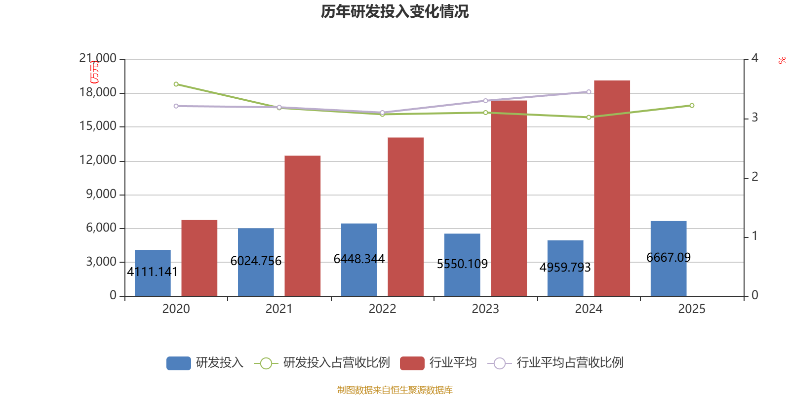2025年全年,公司研发投入金额为6667.09万元,同比增长34.42%;研发投入占营业收入比例为3.22%,相比上年同期上升0.2个百分点。此外,公司全年研发投入资本化率为0%。