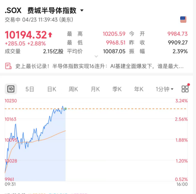 【导读】半导体涨爆了,费城半导体指数涨破10000点