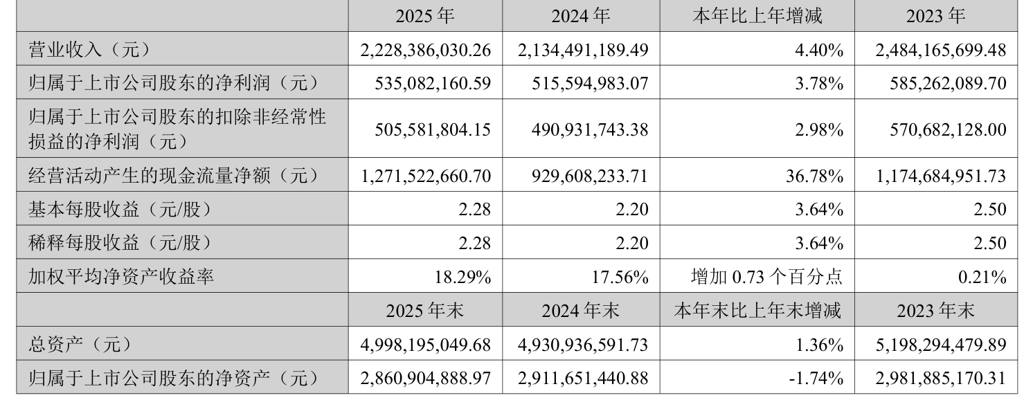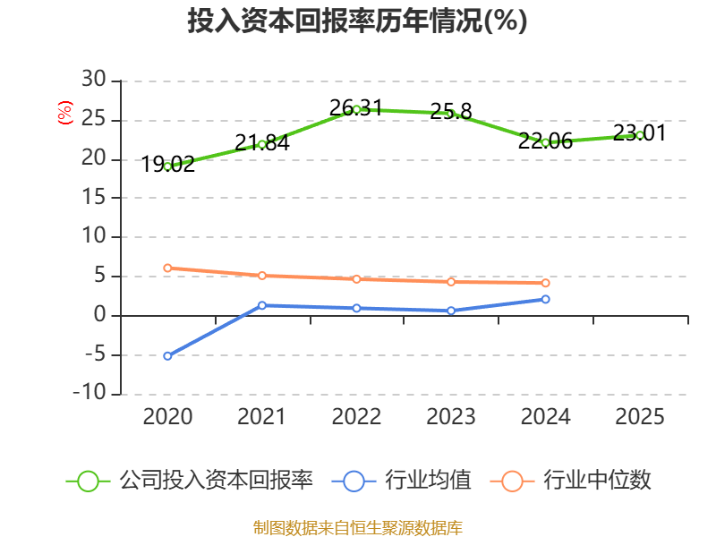 数据显示,2025年公司加权平均净资产收益率为18.29%,较上年同期上升0.73个百分点。公司2025年投入资本回报率为23.01%,较上年同期上升0.95个百分点。