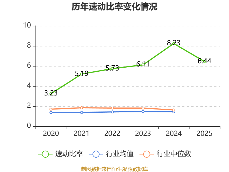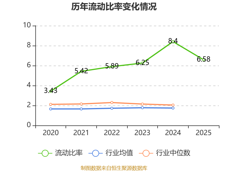 2025年,公司流动比率为6.58,速动比率为6.44。