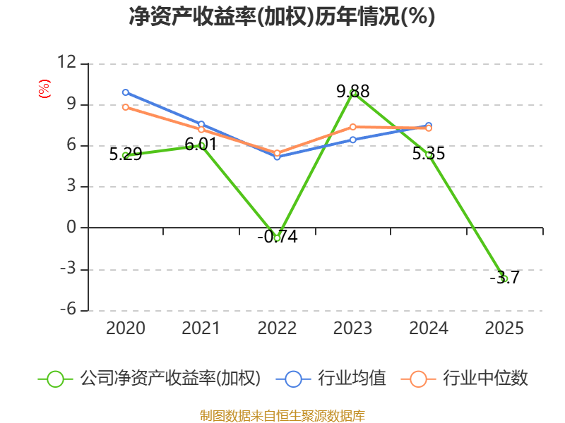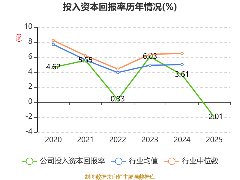 数据显示,2025年公司加权平均净资产收益率为-3.7%,较上年同期下降9.05个百分点。公司2025年投入资本回报率为-2.01%,较上年同期下降5.62个百分点。