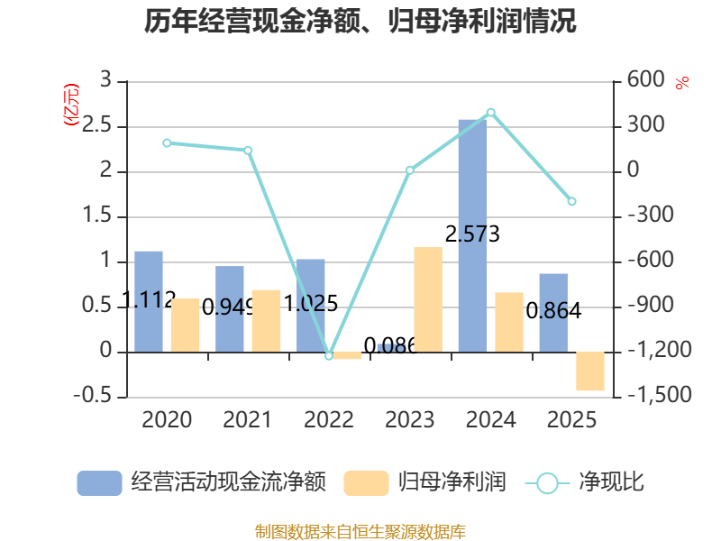 截至2025年,公司经营活动现金流净额为8644.89万元,同比下降66.41%;筹资活动现金流净额1159.62万元,同比增加6643.96万元;投资活动现金流净额-2.47亿元,上年同期为-8958.13万元。