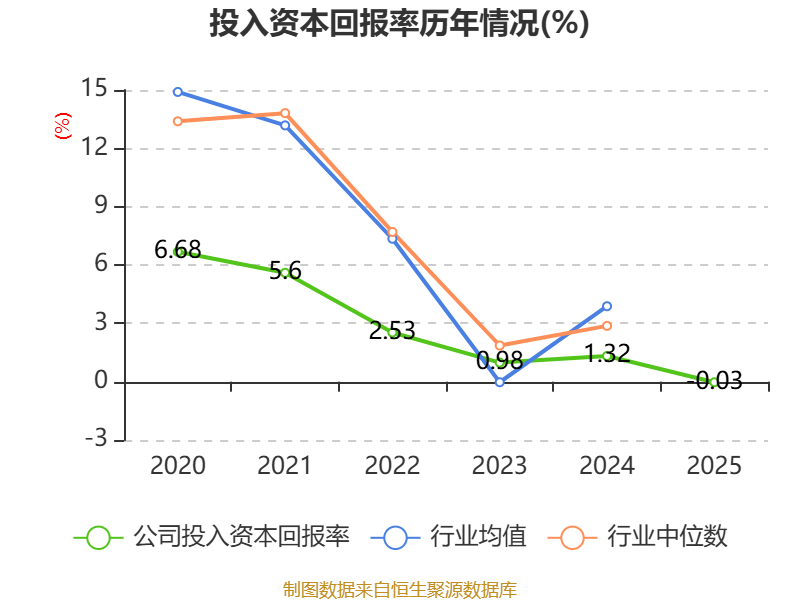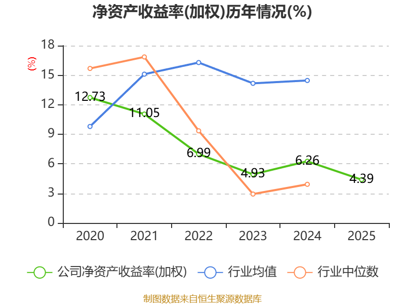 数据显示,2025年公司加权平均净资产收益率为4.39%,较上年同期下降1.87个百分点。公司2025年投入资本回报率为-0.03%,较上年同期下降1.35个百分点。
