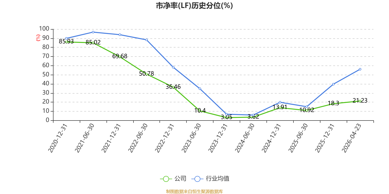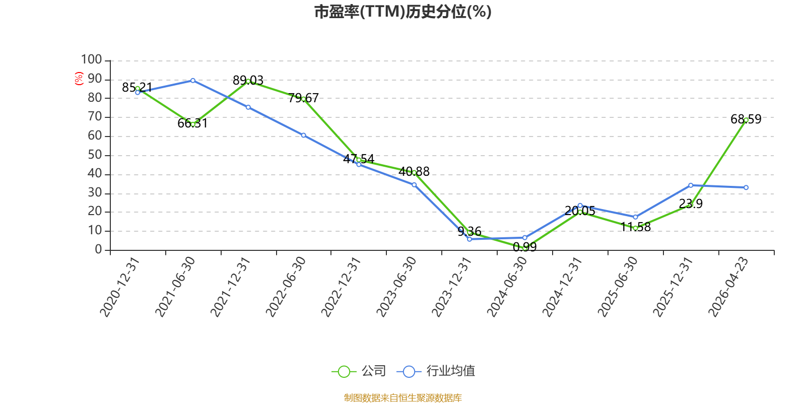 市盈率、市净率为负时,不显示当期分位数,会导致折线图中断。