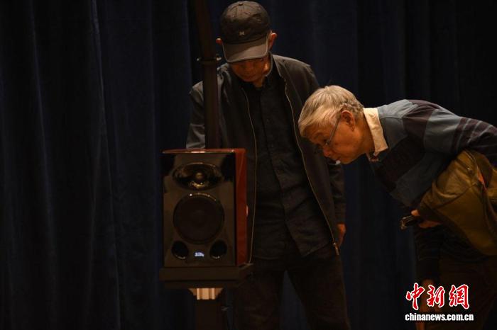 4月23日,发布会现场,嘉宾在参观音箱。王雨佳摄