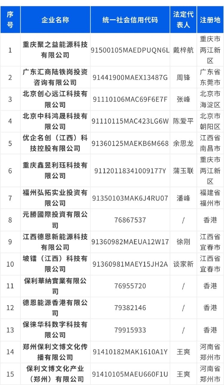以下公司系通过伪造印章、注册材料,将企业注册为保利集团下属公司的假冒国企,实际与保利集团及所属公司无任何隶属与股权关系,也不存在任何投资、合作、业务等关系,请广大社会公众注意甄别,防范风险。