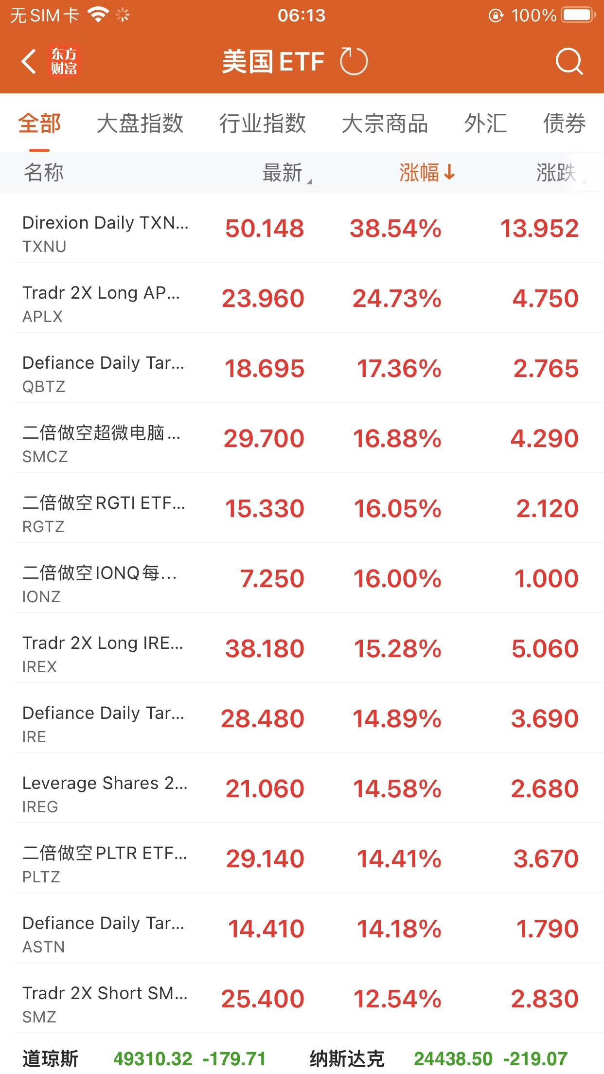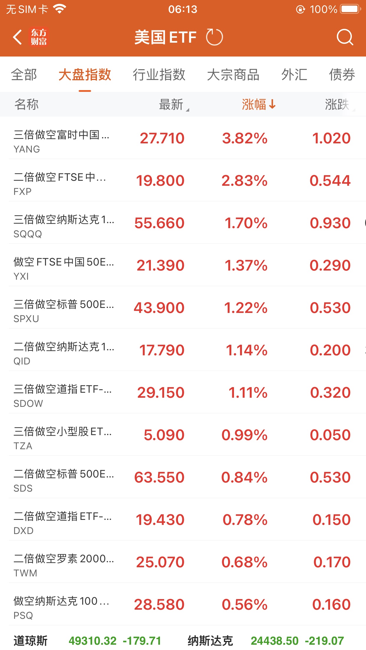 美股ETF追踪 | 大型科技股普跌 三倍做空纳斯达克100ETF涨1.70%
