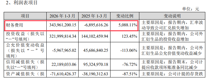值得一提是,歌尔股份的财务费用在2025年及2026年一季度均录得大幅上涨。