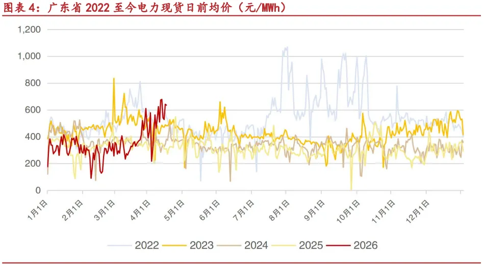 2026年较低的年度电价或难以持续,核心在于2025年底签约2026年年度电力交易电价的时候,存在较多一次性冲击,而2026年在受美伊战争影响能源价格上涨与极端炎热气候预计到来的背景下,或许电价拐点会提前到来。