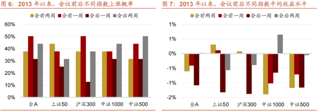 四月政治局会议召开在即,我们认为4月政治局会议或对服务业、安全相关议题(尤其是能源安全相关,比如新型电网、清洁能源)等。后续市场展望上,结合2013年以来以及近5年四月政治局会议前后市场表现来看,我们发现,会议后,小盘风格往往占优。