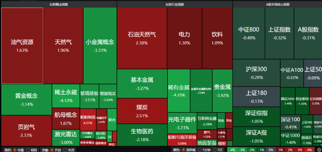 A股三大指数昨日集体下跌,沪指跌0.32%,深证成指跌0.88%,创业板指跌0.87%。沪深京三市成交额达到2.82万亿。行业板块多数收跌,白酒、航海装备、煤炭、电力板块涨幅居前,稀土、贵金属、小金属、有色金属、能源金属板块跌幅居前。
