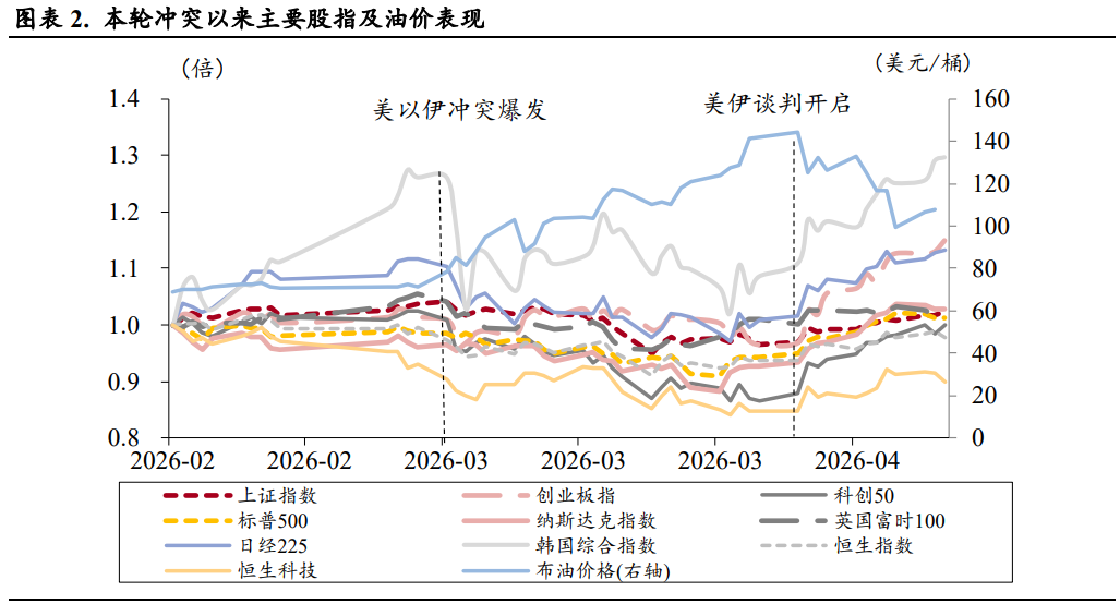 尽管美伊二次谈判仍处于僵持阶段,但A股对这类海外地缘风险的敏感度已明显下降,呈现逐步脱敏的特征。随着地缘风险从突发冲击转为常态化背景,A股的定价重心将更多锚定国内名义价格的修复、美联储货币政策路径的修正以及由此引发的全球流动性再定价。