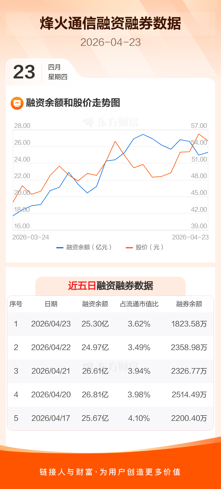 交易所最新数据显示,烽火通信于2026年4月23日获融资买入6.70亿元,融资偿还6.37亿元,当日融资净买入3349.55万元。目前,该股融资余额25.30亿,占流通市值比例为3.62%。