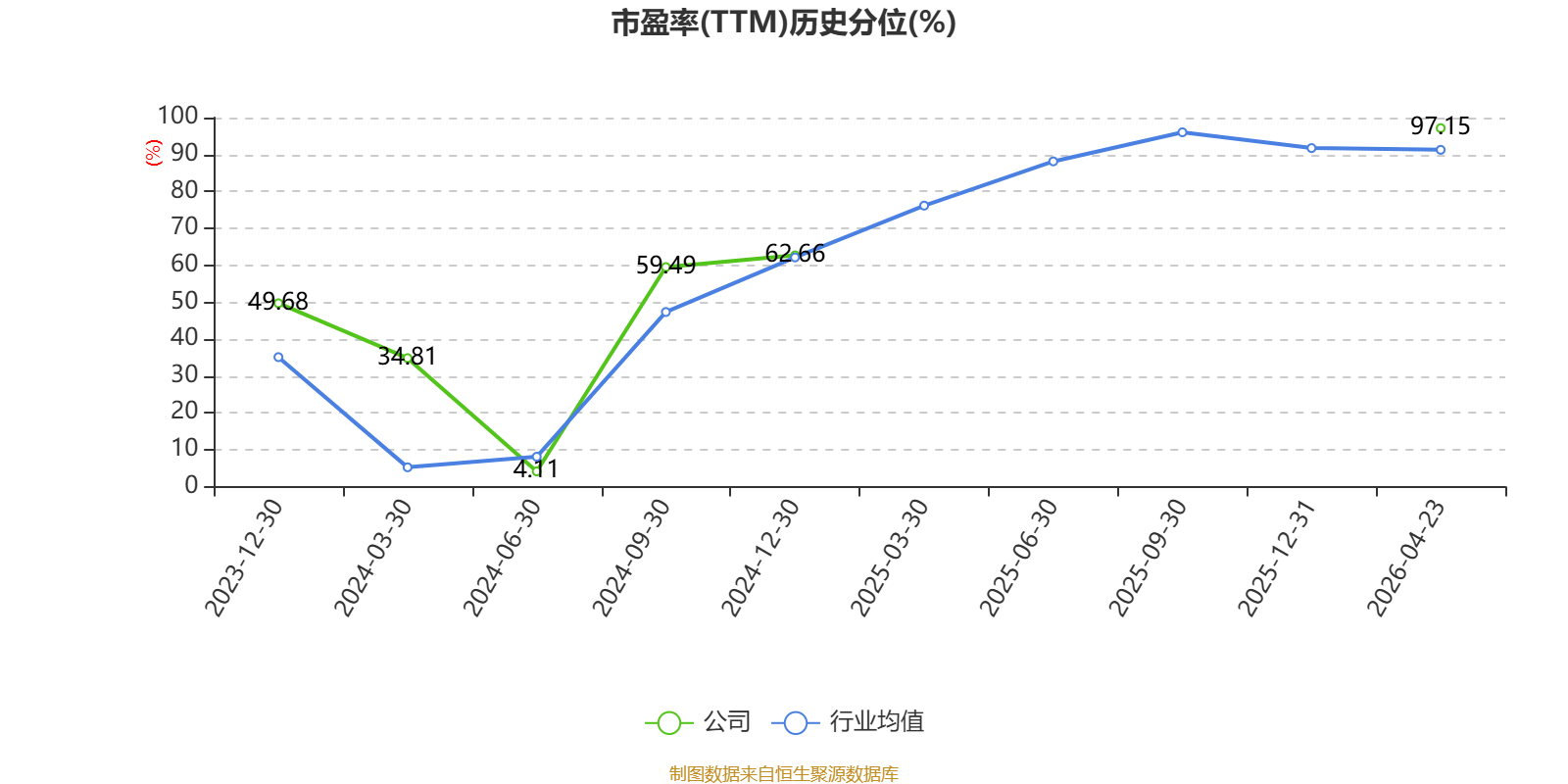 市盈率、市净率为负时,不显示当期分位数,会导致折线图中断。