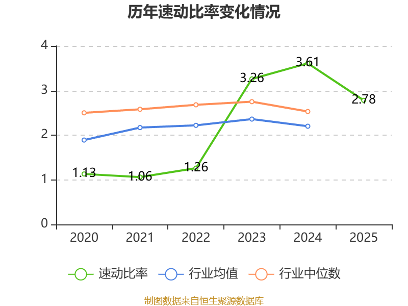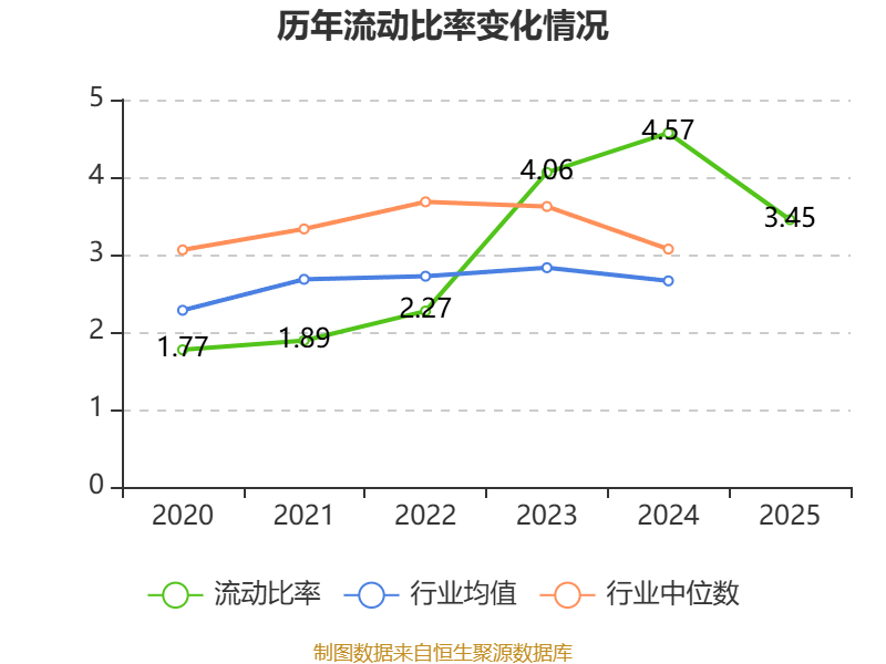 2025年,公司流动比率为3.45,速动比率为2.78。