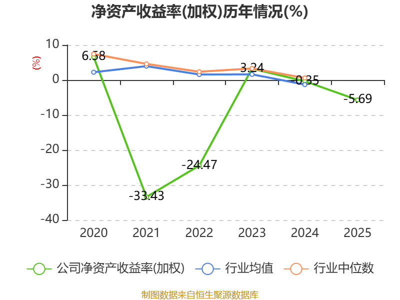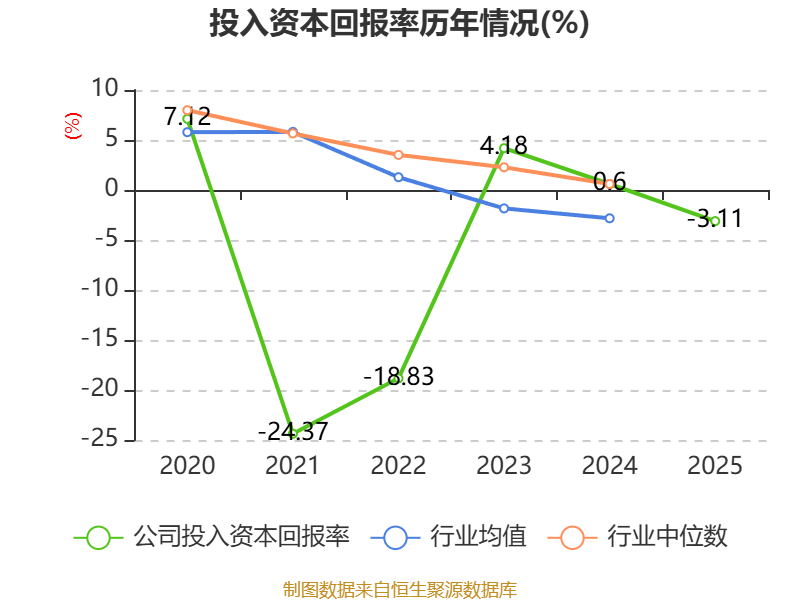 数据显示,2025年公司加权平均净资产收益率为-5.69%,较上年同期下降5.34个百分点。公司2025年投入资本回报率为-3.11%,较上年同期下降3.71个百分点。