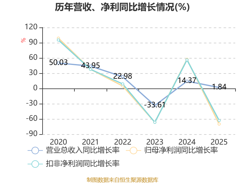 中证智能财讯拱东医疗(605369)4月24日披露2025年年度报告。2025年,公司实现营业总收入11.36亿元,同比增长1.84%;归母净利润5150.72万元,同比下降69.99%;扣非净利润6222.35万元,同比下降63.00%;经营活动产生的现金流量净额为2.54亿元,同比增长20.71%;报告期内,拱东医疗基本每股收益为0.23元,加权平均净资产收益率为3.04%。公司2025年度分配预案为:拟向全体股东每10股派现1.5元(含税)。