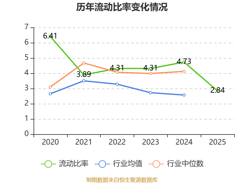 2025年,公司流动比率为2.84,速动比率为2.48。