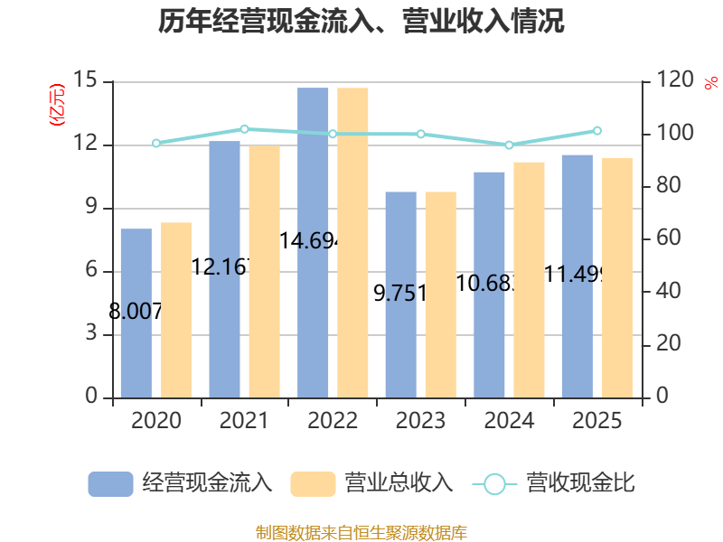 截至2025年,公司经营活动现金流净额为2.54亿元,同比增长20.71%;筹资活动现金流净额6523.88万元,同比增加1.83亿元;投资活动现金流净额-8058.85万元,上年同期为-1.96亿元。