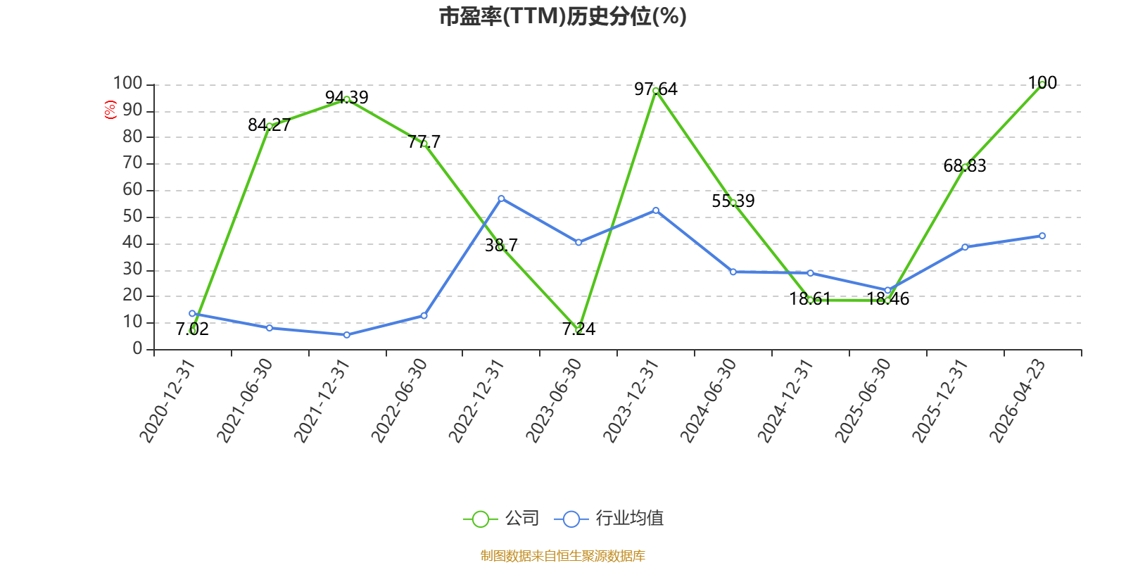 市盈率、市净率为负时,不显示当期分位数,会导致折线图中断。