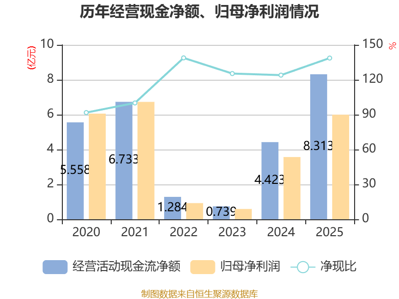 截至2025年,公司经营活动现金流净额为8.31亿元,同比增长87.96%;筹资活动现金流净额-2.74亿元,同比增加3.43亿元;投资活动现金流净额-6.8亿元,上年同期为1.54亿元。