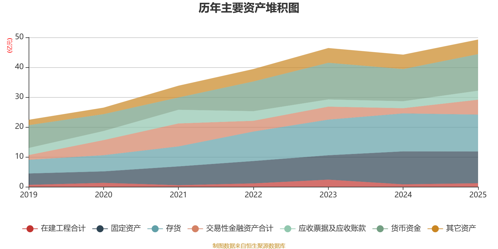 资产重大变化方面,截至2025年末,公司交易性金融资产合计较上年末增加187.69%,占公司总资产比重上升6.18个百分点;存货较上年末减少3%,占公司总资产比重下降3.73个百分点;固定资产较上年末减少3.49%,占公司总资产比重下降3.34个百分点;应收票据及应收账款较上年末增加28.56%,占公司总资产比重上升0.82个百分点。