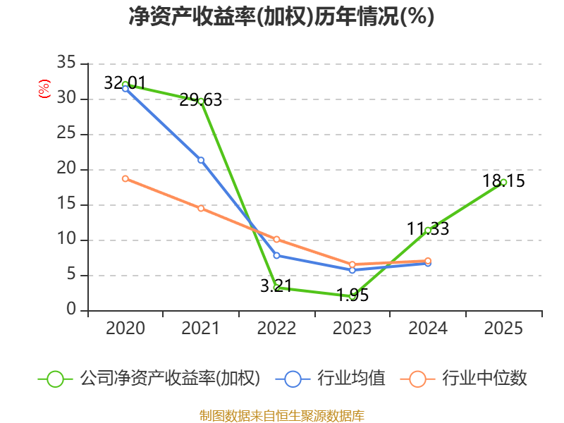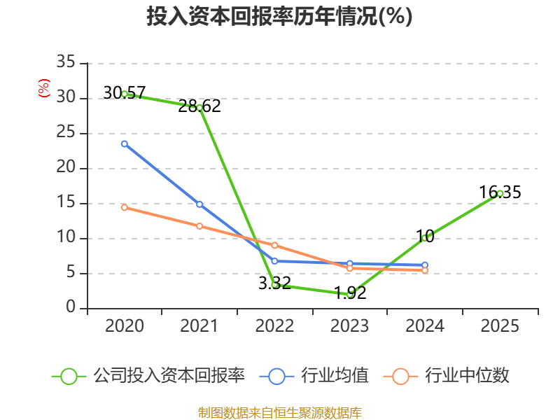 数据显示,2025年公司加权平均净资产收益率为18.15%,较上年同期上升6.82个百分点。公司2025年投入资本回报率为16.35%,较上年同期上升6.35个百分点。