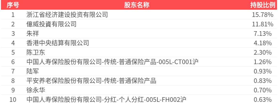 公司股东户数为4.80万户,前十大股东持股数量为3.87亿股,占总股本比例为45.54%,前十大股东持股情况如下: