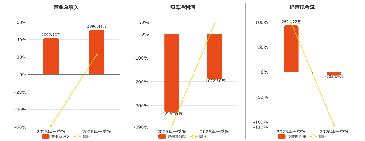 *ST赛为(300044.SZ):2026年一季报净利润为-1072.38万元,同比亏损缩小