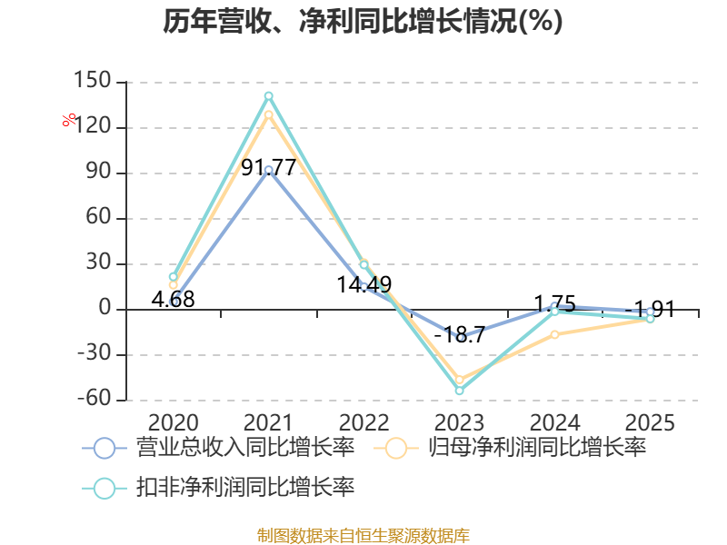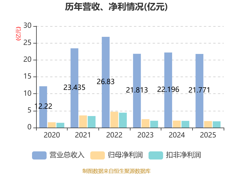 中证智能财讯元利科技(603217)4月24日披露2025年年度报告。2025年,公司实现营业总收入21.77亿元,同比下降1.91%;归母净利润1.93亿元,同比下降6.76%;扣非净利润1.86亿元,同比下降6.57%;经营活动产生的现金流量净额为-3098.02万元,上年同期为4680.33万元;报告期内,元利科技基本每股收益为0.93元,加权平均净资产收益率为5.79%。公司2025年度分配预案为:拟向全体股东每10股派现3元(含税)。