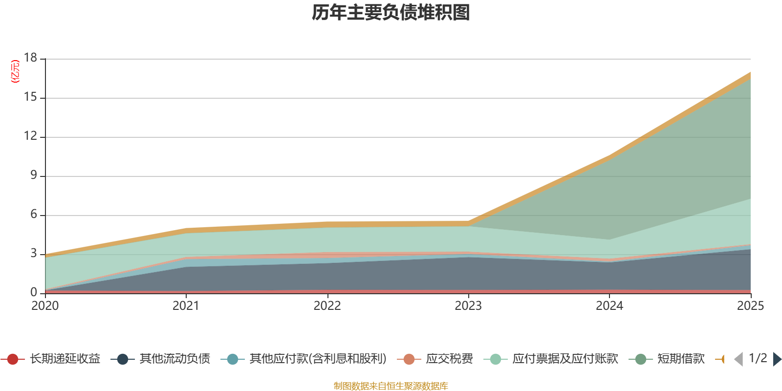 负债重大变化方面,截至2025年末,公司短期借款较上年末增加50.82%,占公司总资产比重上升4个百分点;应付票据及应付账款较上年末增加139.21%,占公司总资产比重上升3.48个百分点;其他流动负债较上年末增加49.49%,占公司总资产比重上升1.32个百分点;其他应付款(含利息和股利)较上年末增加334.08%,占公司总资产比重上升0.45个百分点。