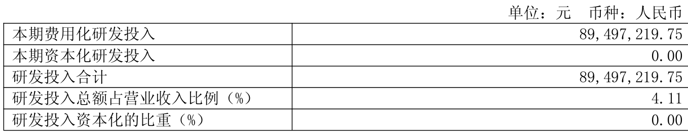 2025年全年,公司研发投入金额为8949.72万元,同比下降4.94%;研发投入占营业收入比例为4.11%,相比上年同期下降0.13个百分点。此外,公司全年研发投入资本化率为0%。