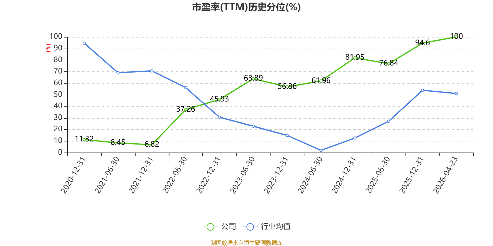 市盈率、市净率为负时,不显示当期分位数,会导致折线图中断。
