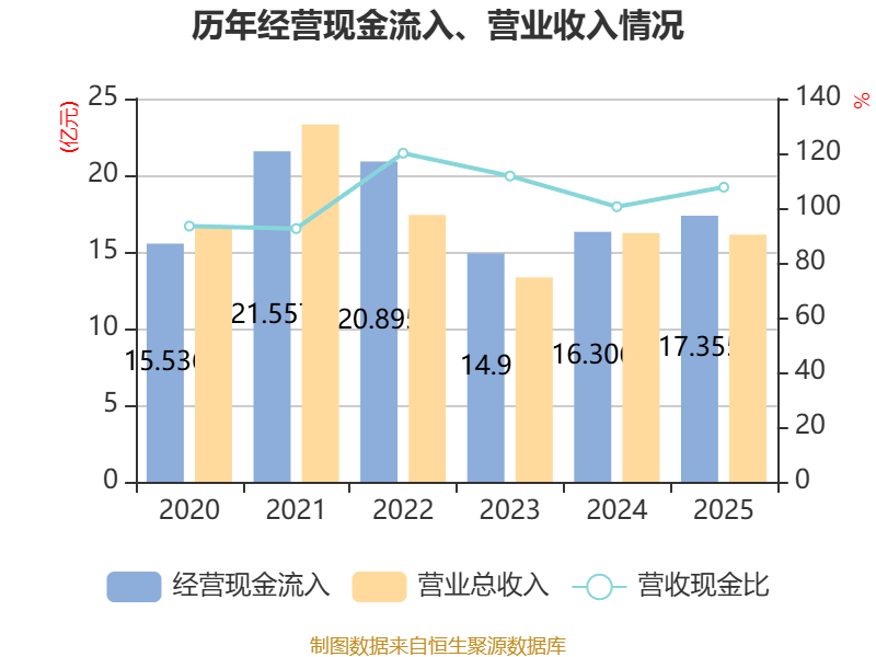 截至2025年,公司经营活动现金流净额为1.09亿元,同比增加1.13亿元;筹资活动现金流净额60.84万元,同比增加3278.76万元;投资活动现金流净额-1.21亿元,上年同期为-1.16亿元。