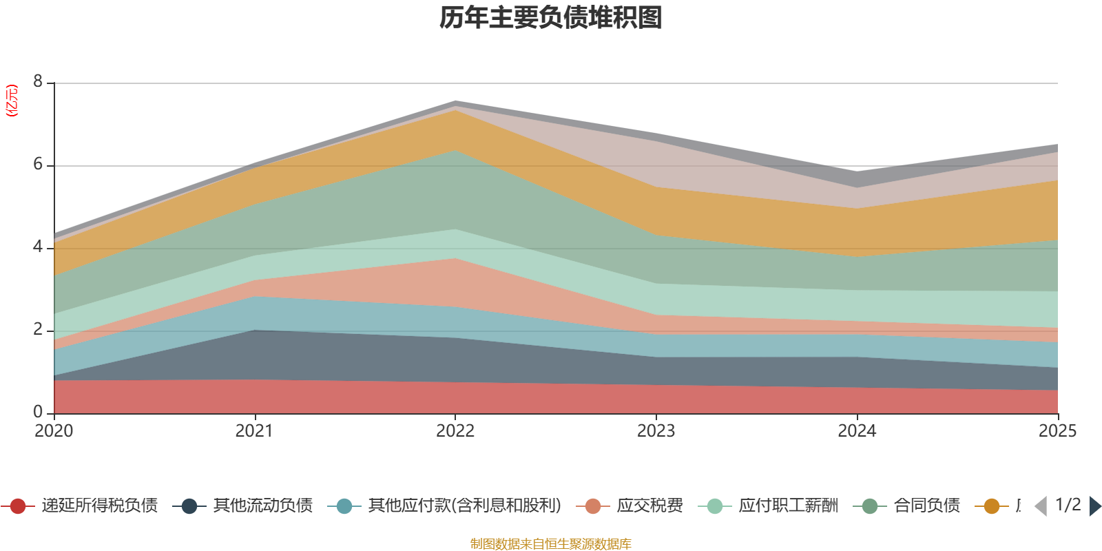负债重大变化方面,截至2025年末,公司合同负债较上年末增加53.57%,占公司总资产比重上升1.2个百分点;长期借款较上年末减少100%,占公司总资产比重下降0.82个百分点;其他流动负债较上年末减少25.72%,占公司总资产比重下降0.72个百分点;应付票据及应付账款较上年末增加23.51%,占公司总资产比重上升0.65个百分点。