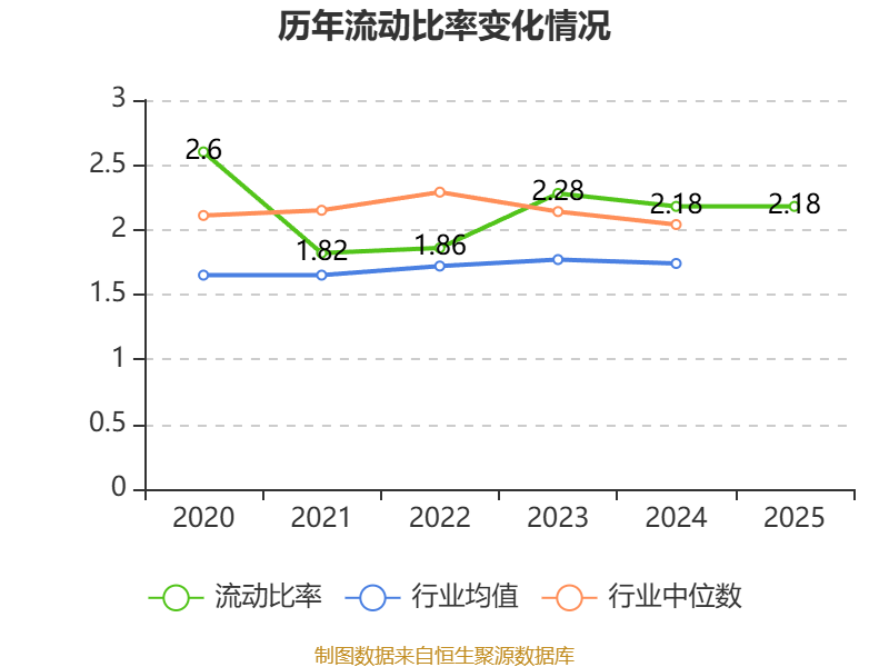 2025年,公司流动比率为2.18,速动比率为1.83。
