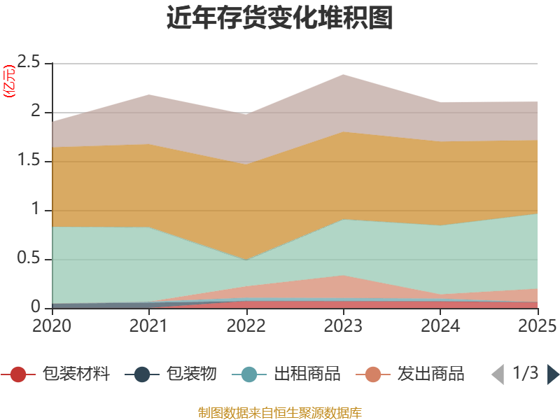 从存货变动来看,截至2025年末,公司存货账面价值为2.11亿元,占净资产的8.25%,较上年末增加82.01万元。其中,存货跌价准备为748.24万元,计提比例为3.43%。