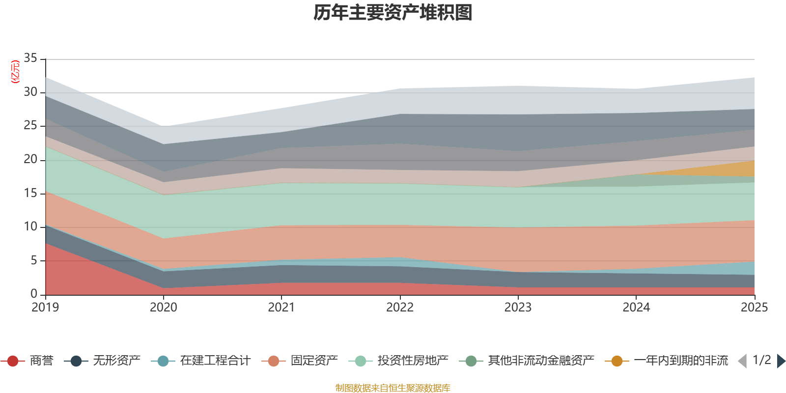 资产重大变化方面,截至2025年末,公司一年内到期的非流动资产占公司总资产的7.3%,上年末为0;货币资金较上年末减少26.35%,占公司总资产比重下降4.13个百分点;在建工程合计较上年末增加179.12%,占公司总资产比重上升3.8个百分点;其他非流动金融资产较上年末减少51.89%,占公司总资产比重下降3.24个百分点。