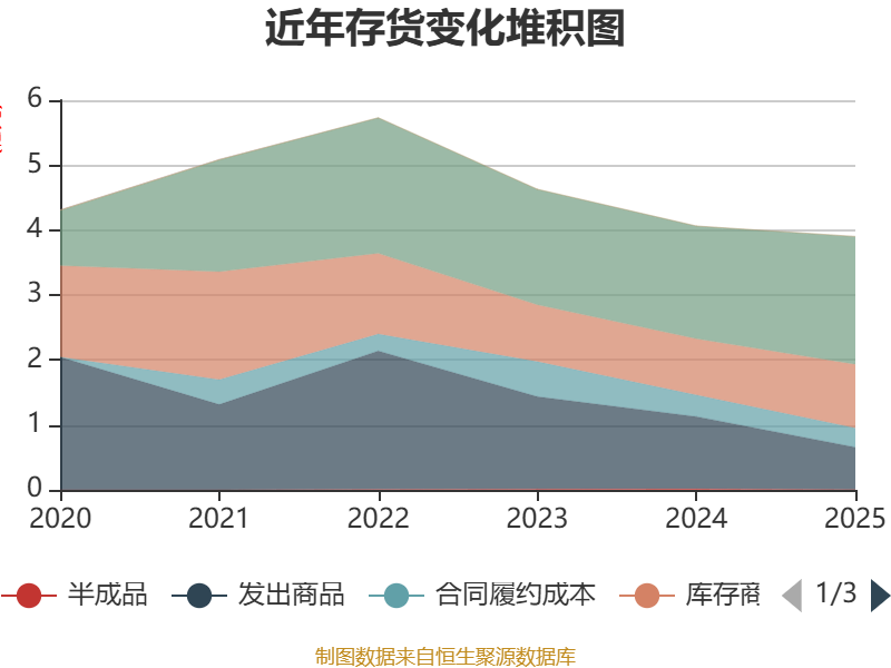 从存货变动来看,截至2025年末,公司存货账面价值为3.9亿元,占净资产的4.05%,较上年末减少1601.96万元。其中,存货跌价准备为3175.32万元,计提比例为7.52%。