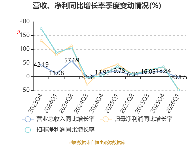 截至2026年一季度末,公司经营活动现金流净额为8823.35万元,同比增长243.25%;筹资活动现金流净额2720.05万元,同比增加2422.45万元;投资活动现金流净额-1.75亿元,上年同期为-6319.59万元。