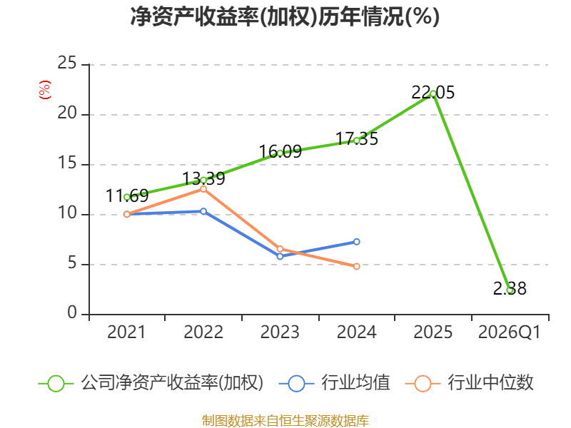 盈利能力方面, 2026年一季度公司加权平均净资产收益率为2.38%,同比下降2.59个百分点。公司2026年第一季度投入资本回报率为1.9%,较上年同期下降1.82个百分点。