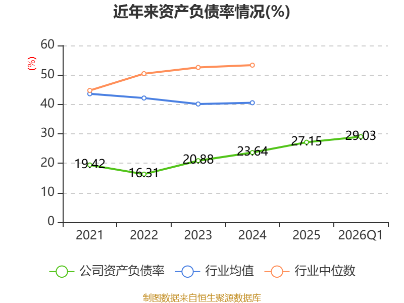负债重大变化方面,截至2026年一季度末,公司长期借款较上年末增加32.24%,占公司总资产比重上升2.29个百分点;预收款项较上年末增加885.09%,占公司总资产比重上升1.96个百分点;一年内到期的非流动负债较上年末减少52.34%,占公司总资产比重下降1.36个百分点;应付职工薪酬较上年末减少38.62%,占公司总资产比重下降0.51个百分点。