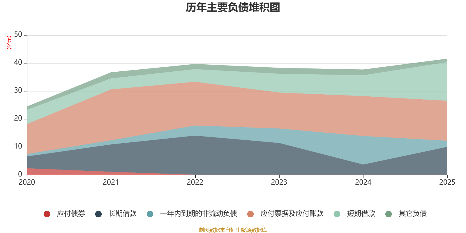 负债重大变化方面,截至2025年末,公司一年内到期的非流动负债较上年末减少78.49%,占公司总资产比重下降12.81个百分点;长期借款较上年末增加174.34%,占公司总资产比重上升9.08个百分点;短期借款较上年末增加85.5%,占公司总资产比重上升8.8个百分点;应付票据及应付账款较上年末增加0.22%,占公司总资产比重下降1.22个百分点。