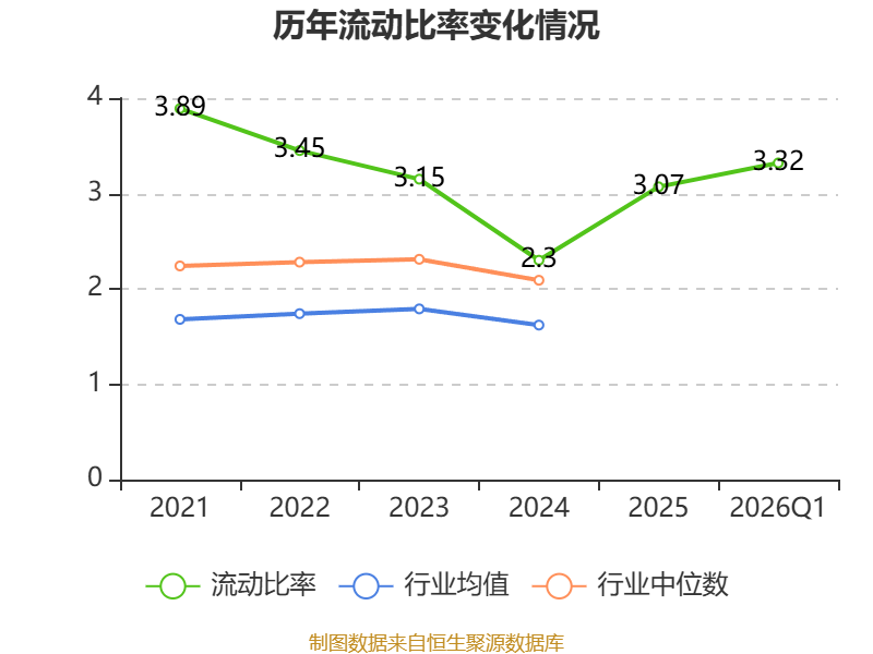 2026年第一季度,公司流动比率为3.32,速动比率为3.19。