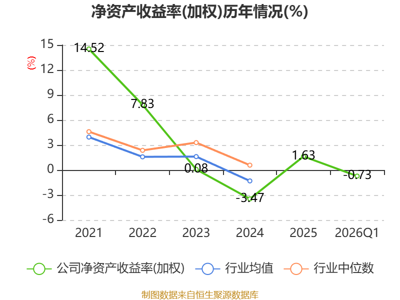 盈利能力方面, 2026年一季度公司加权平均净资产收益率为-0.73%,同比下降0.78个百分点。公司2026年第一季度投入资本回报率为-0.77%,较上年同期下降0.69个百分点。