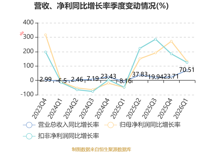 资产重大变化方面,截至2026年一季度末,公司货币资金较上年末减少65.43%,占公司总资产比重下降9.88个百分点;预付款项较上年末增加2598.55%,占公司总资产比重上升5.12个百分点;交易性金融资产合计占公司总资产的5.11%,上年末为0;应收票据及应收账款较上年末减少7%,占公司总资产比重下降2.61个百分点。