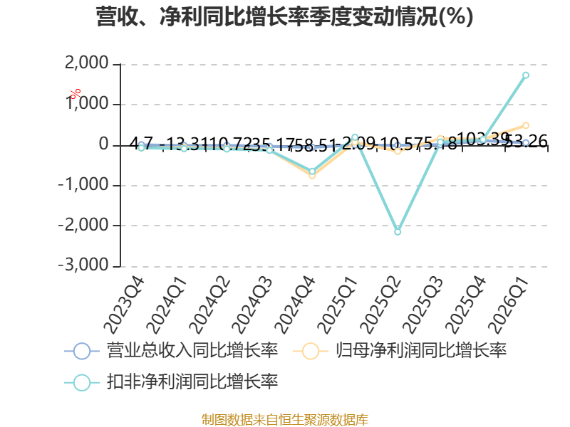 负债重大变化方面,截至2026年一季度末,公司长期借款较上年末增加71.15%,占公司总资产比重上升7.99个百分点;应付票据及应付账款较上年末增加2.78%,占公司总资产比重下降1.97个百分点;一年内到期的非流动负债较上年末减少6.89%,占公司总资产比重下降1.11个百分点;短期借款较上年末减少4.72%,占公司总资产比重下降0.81个百分点。