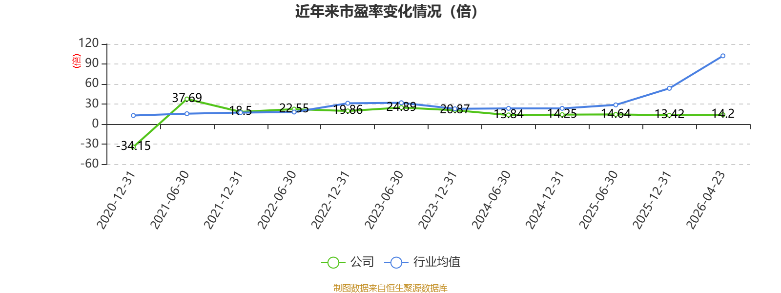 以4月23日收盘价计算,中国海诚目前市盈率(TTM)约为14.2倍,市净率(LF)约1.7倍,市销率(TTM)约0.7倍。